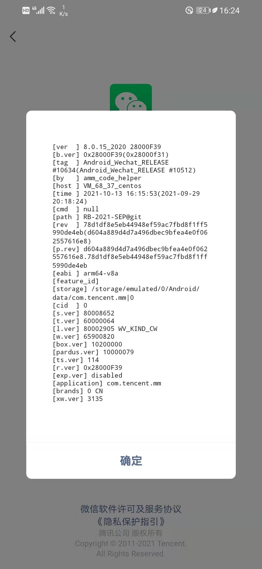 3. 微信版本号(微信-我-设置-关于微信-点击微信logo-截图):