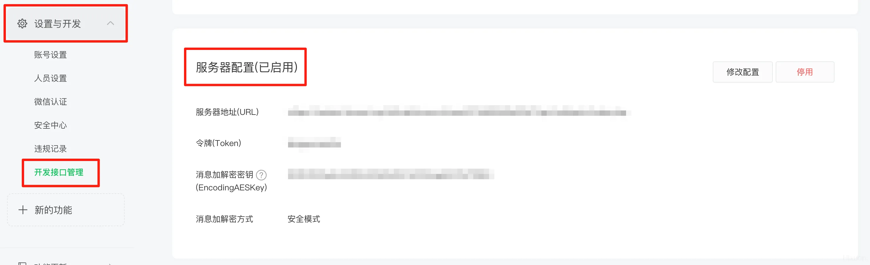 需注意:停用后可能会影响你们之前通过接口开发的一些功能(比如之前通过接口配置好的自动回复、自定义菜单等等)。