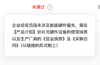 你好,如主体申请公司经营范围未涉及智能硬件【例如计算机软硬件、电子产品、信息系统集成服务等相关】,即需要提供与生产厂商的营业执照及采购合同才可支持硬件设备能力的申请~