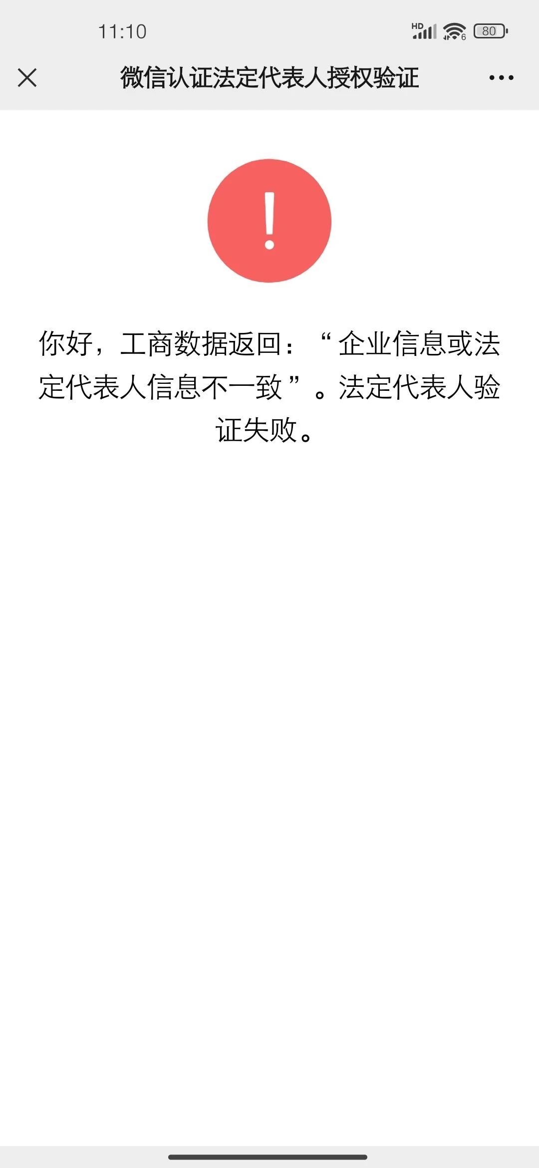 营业执照已经注册12天了,提交公众号认证时还是提示法人信息不对