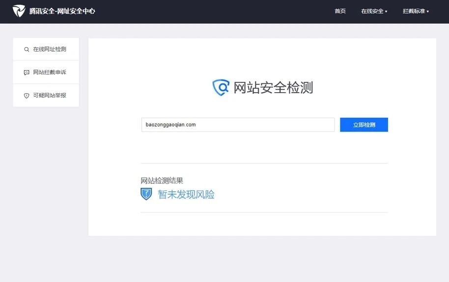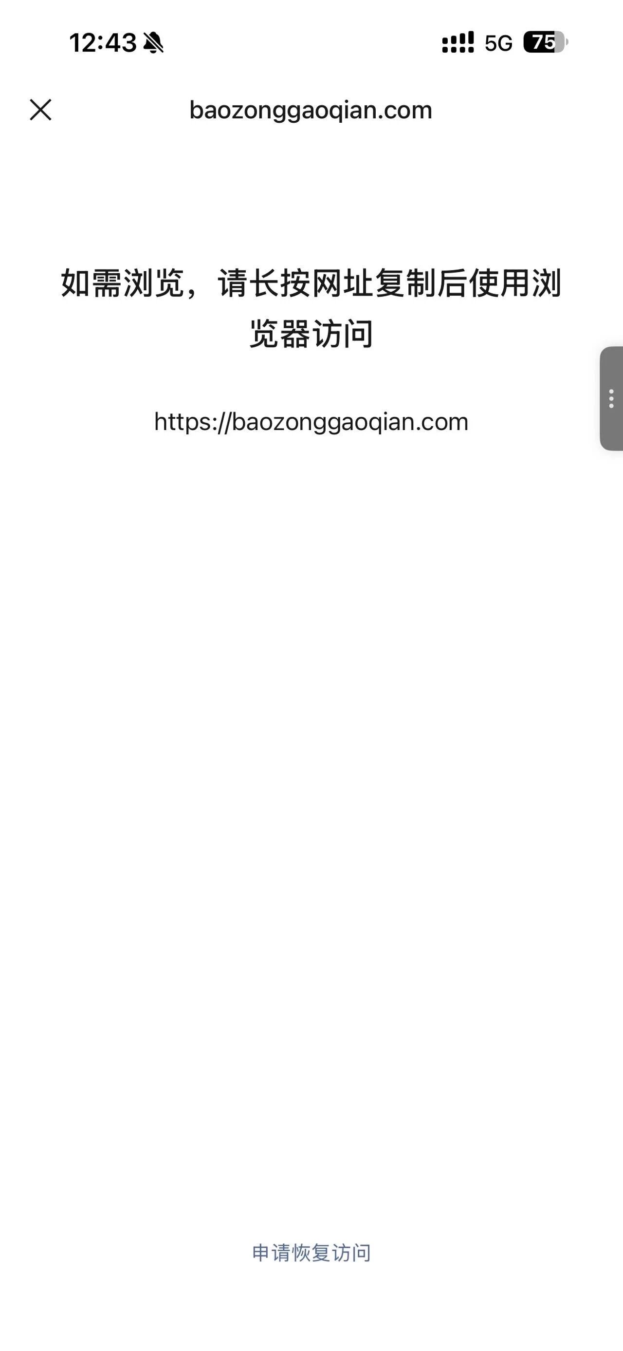 您好,网站链接在微信内无法正常打开(浏览器访问正常),经自查及腾讯安全检测均未发现风险,访问受限已影响用户体验及业务推广。已通过腾讯安全-网址安全中心检测(检测结果:未发现危险)。还请尽快帮忙解除一下,谢谢!网址:baozonggaoqian.com
