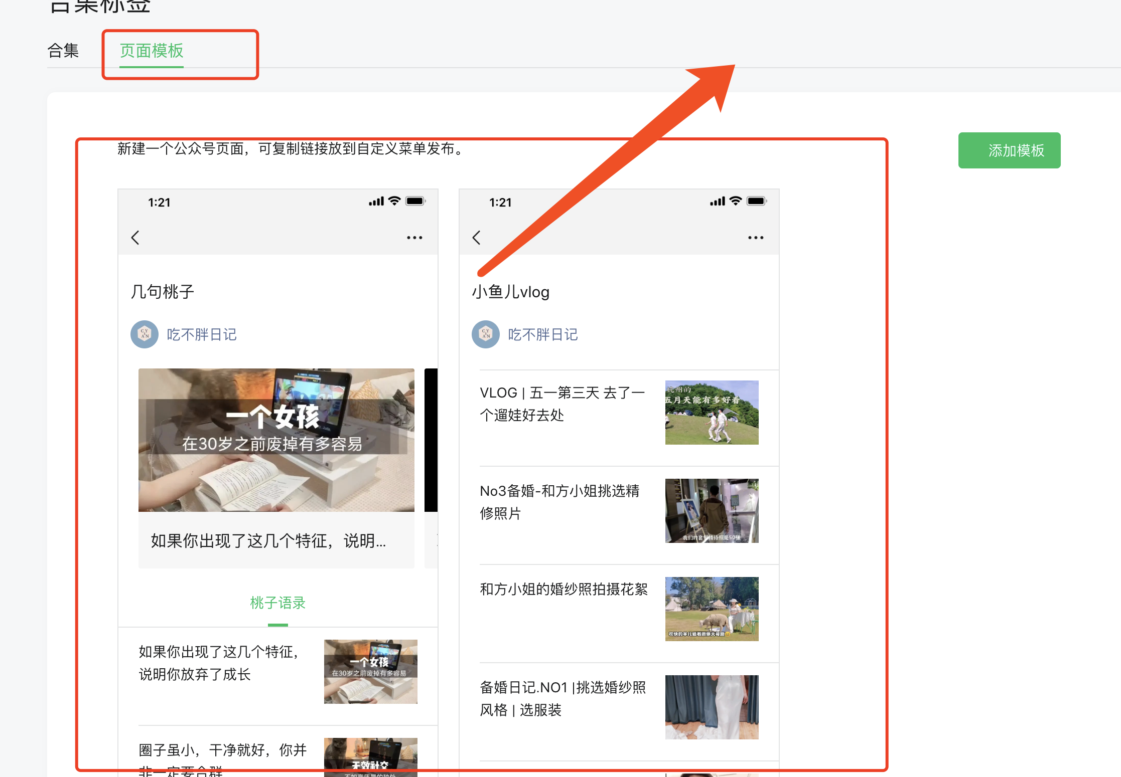 确实是,模板的子页面无法编辑,鼠标移动上去是灰色的。