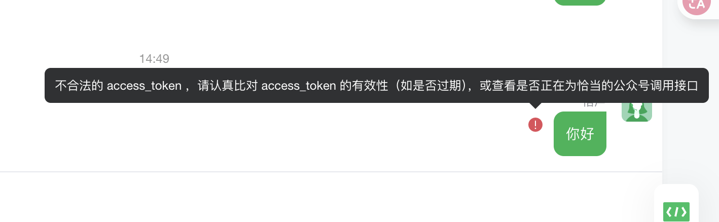 发送消息给之前接入微信客服的用户提示不合法的 access_token,也无法正常接收微信客服的消息。