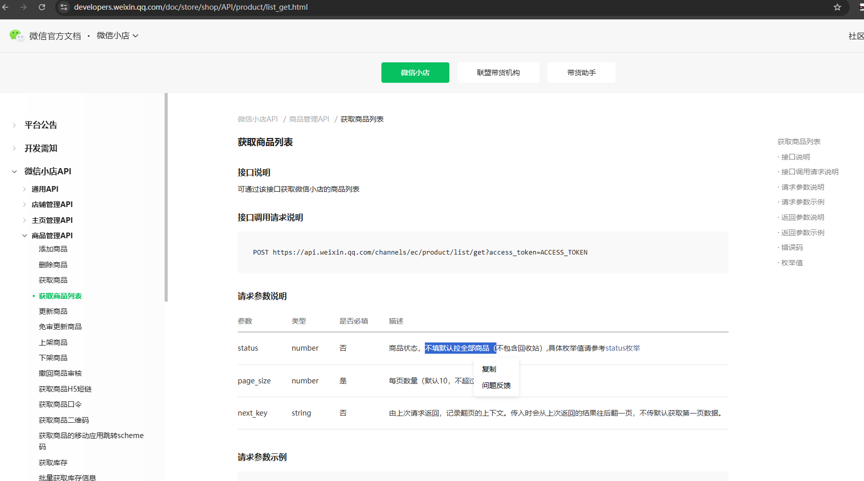 官方文档:获取商品列表接口,如果status不填 会获取全部商品,但是实际获取的时候,不会返回草稿箱中的商品