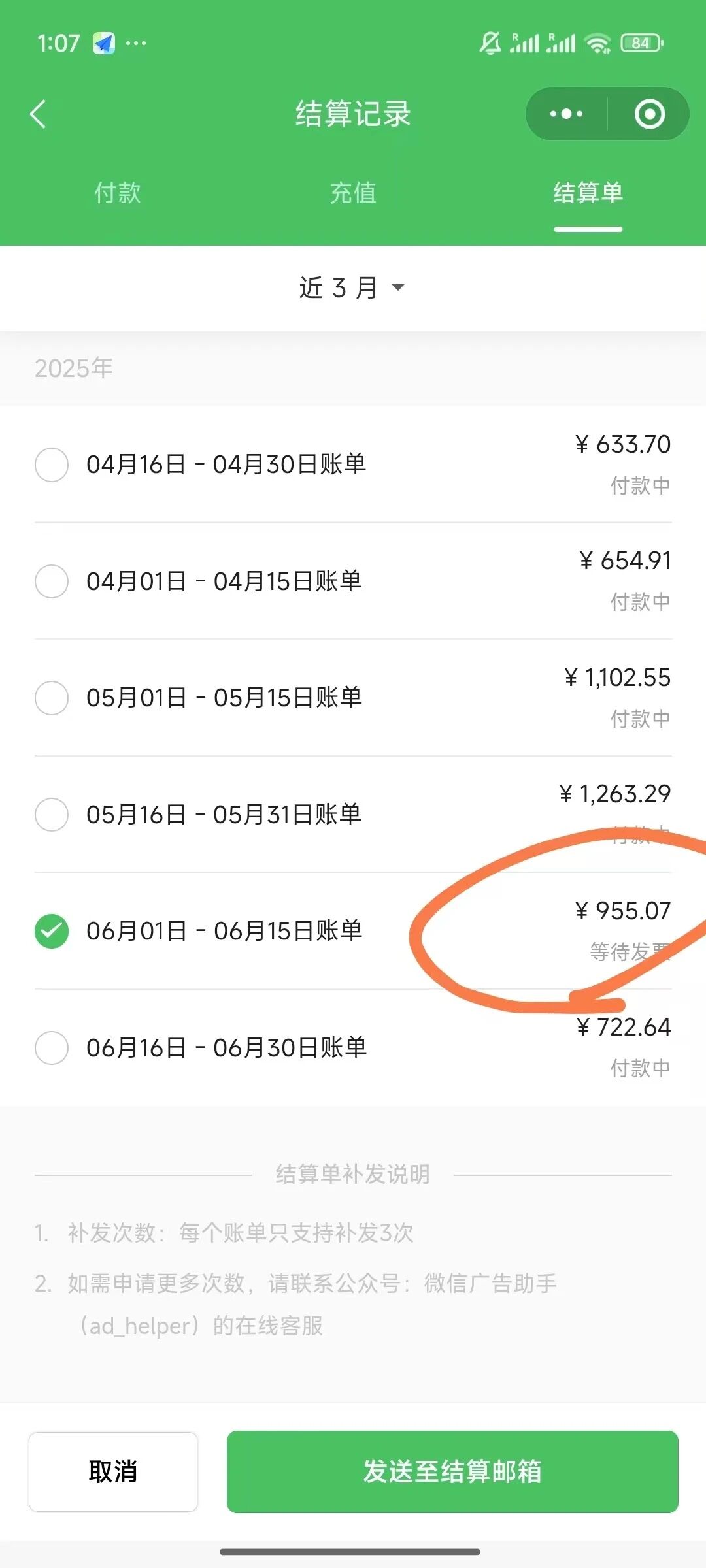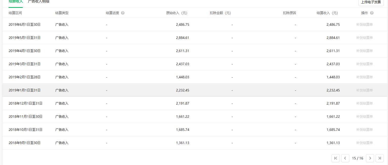 流量主结算 2017年7月至2019年9月结算单未收到 需要补发结算单。