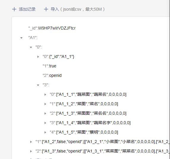 一个菜地集合 里面有多个菜地 对象 对象的 _id 自己指定 。用API add 记录到集合 的时候可以自己指定 _id。