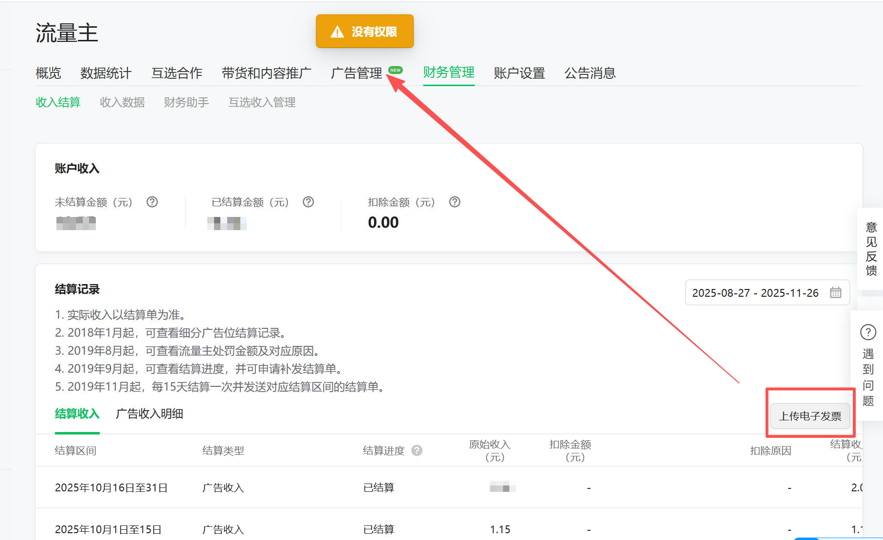 你好,上传电子发票前提条件需注册流量主财务助手,具体操作可参考流量主无纸化结算流程:https://docs.qq.com/doc/DUGp1cEFsVmtmdEVL