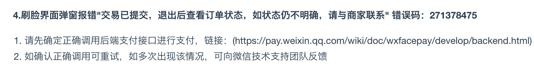 调用WxPayFace.getInstance().getWxpayfaceCode,弹出刷脸,输入手机号后卡住没反应,弹出这个提示: