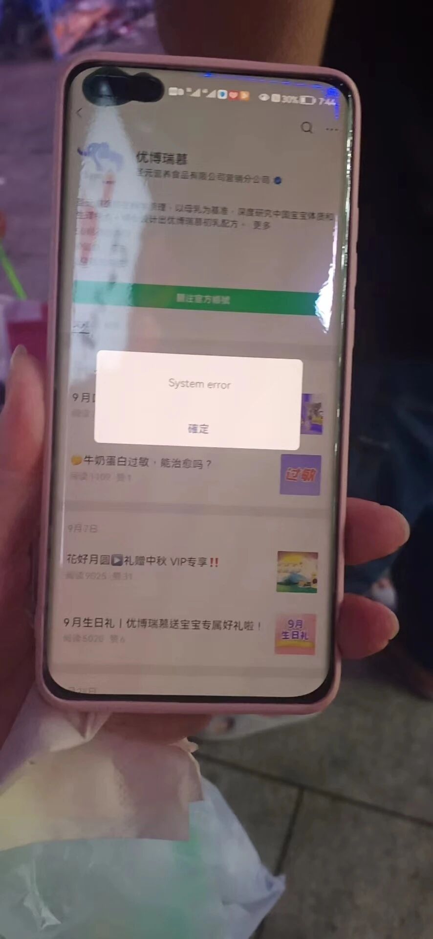 后端生成带参数的公众号二维码,给用户扫码,不时有用户反馈扫码后进入这个关注页弹出这个system error