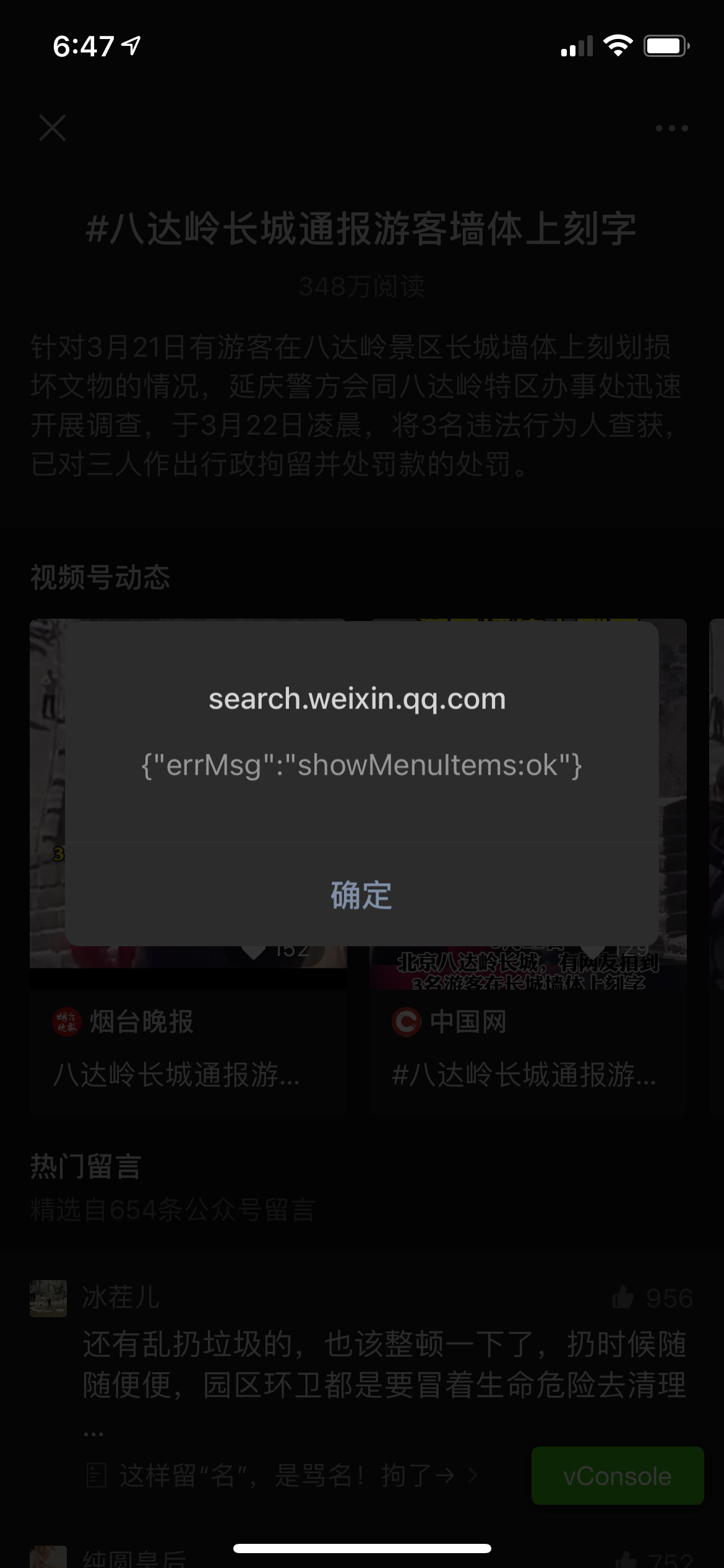 在进入搜一搜点进标题,会显示测试环境,并且开启了调试模式