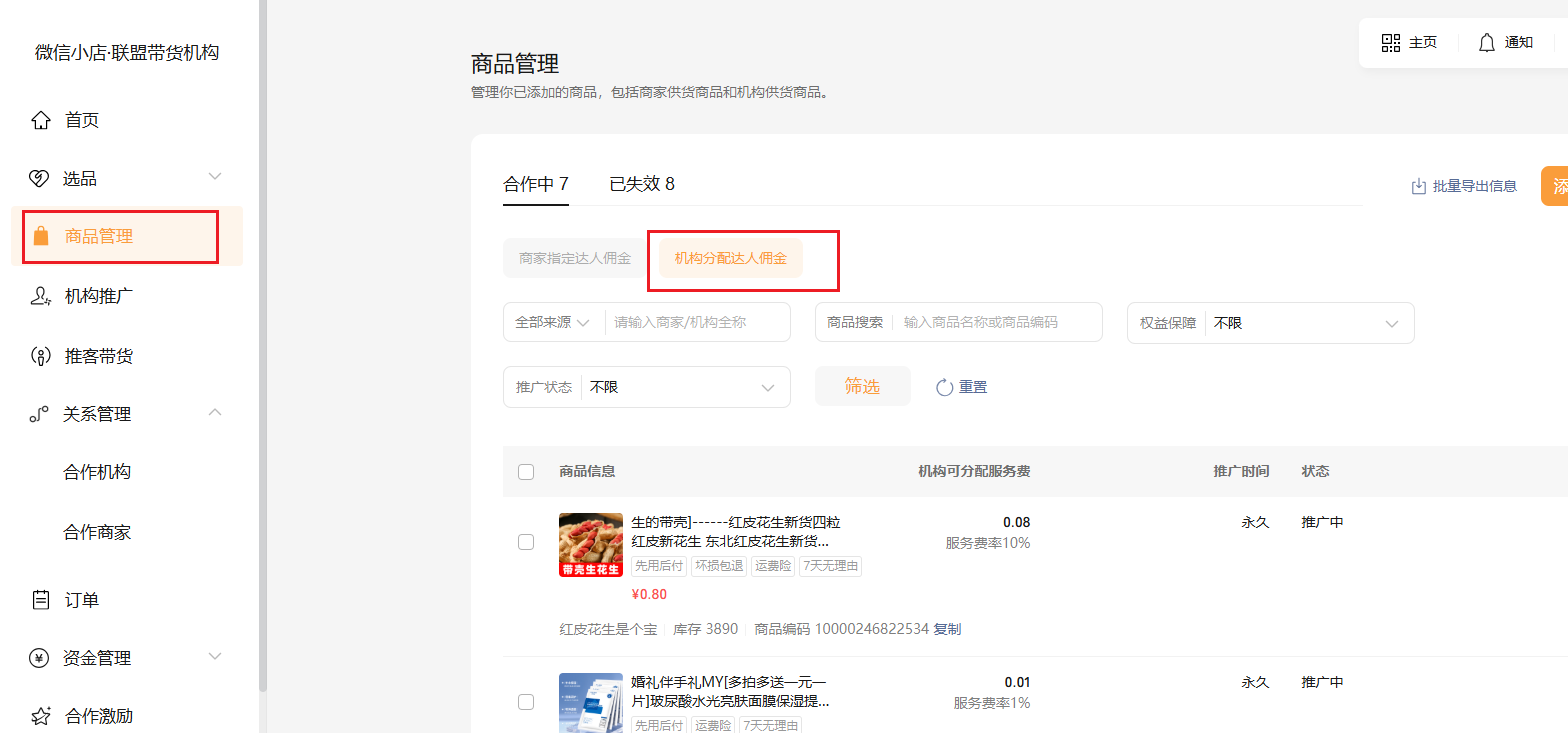 2.并且小程序用户成为推客并绑定联盟带货机构后 通过何种方式在小程序中售卖联盟机构中添加的合作商品 推客如何从中获取分佣?