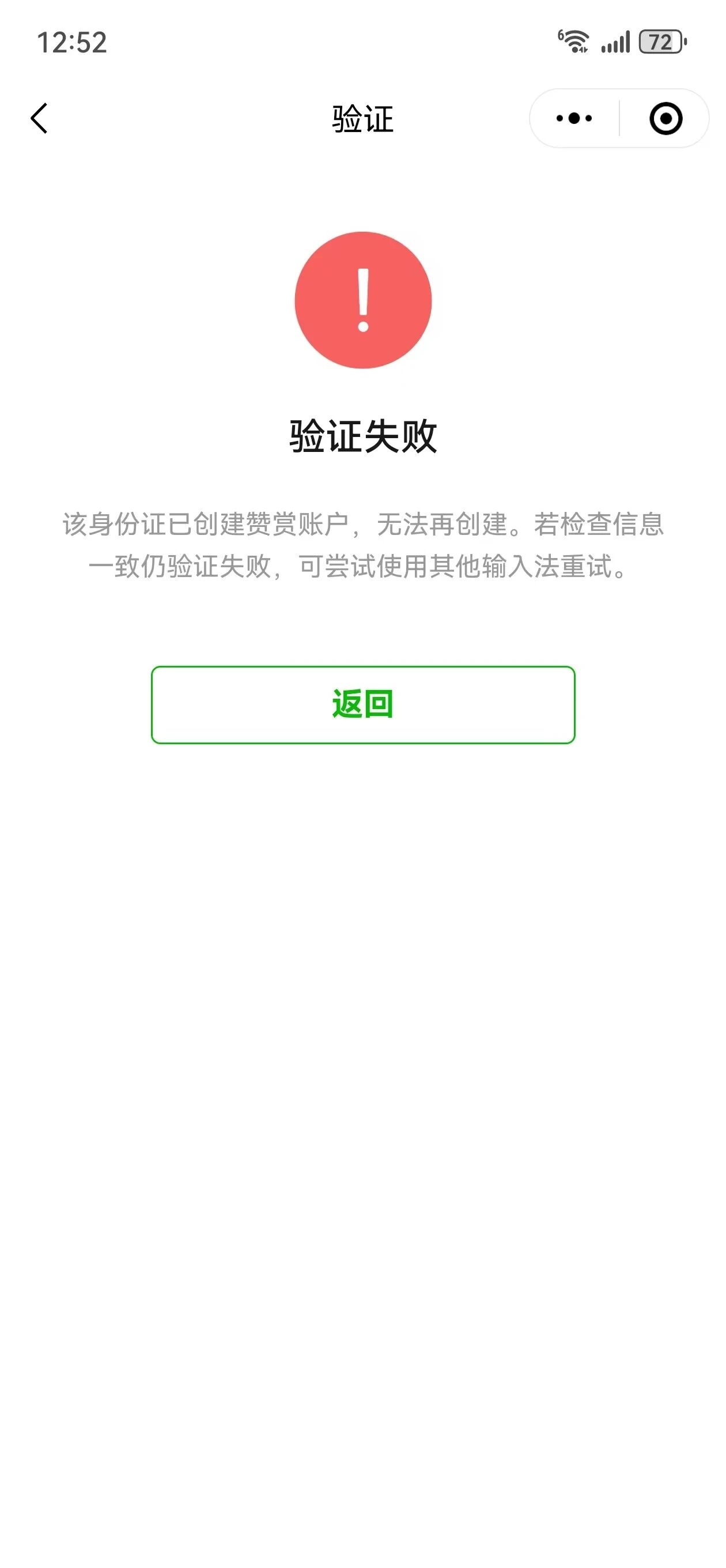 现在想在刚注册的这个公众号设立赞赏,提示身份信息被占用无法创建。