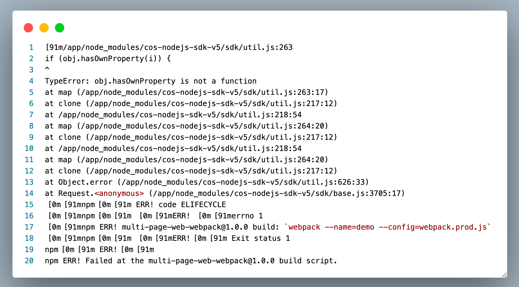 可是 使用微信云托管在打包后 上传 cos 时 就会包如图所示报错