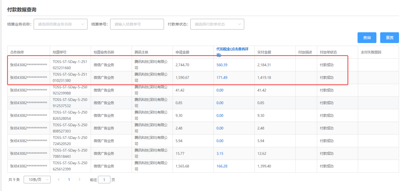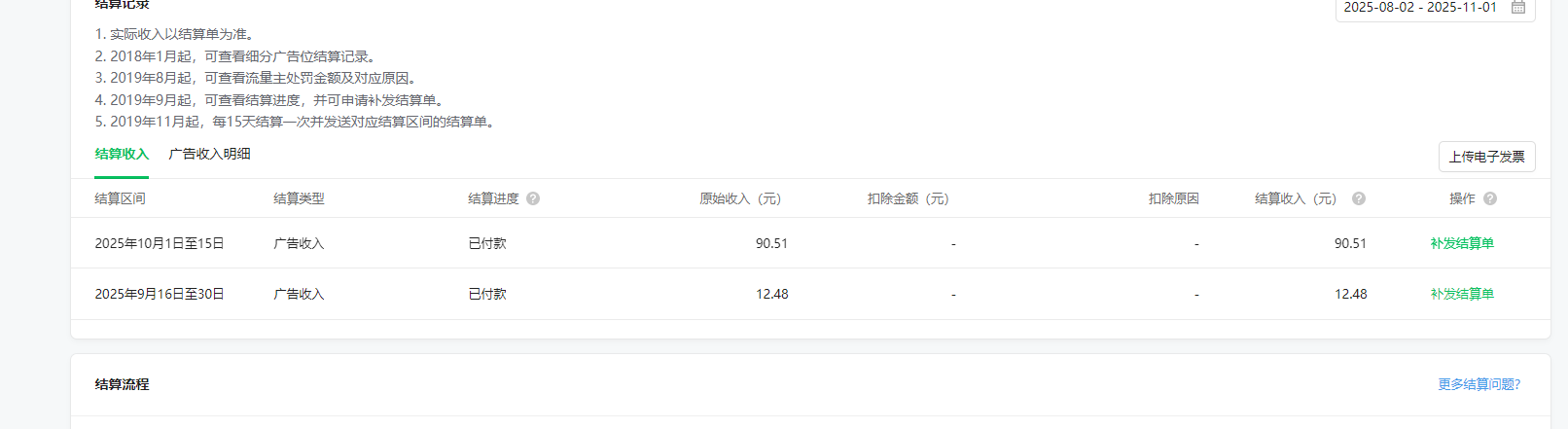 我的流量主结算收入,9月下旬与10月上旬共二笔。结算进度都是显示已付款。但是我账户没有收到。在后台查看了付款数据查询,也没有这二笔金额的付款记录。请问下,我应该找谁去咨询。除二张图片,一张是结算收入单。一张是付款数据查询