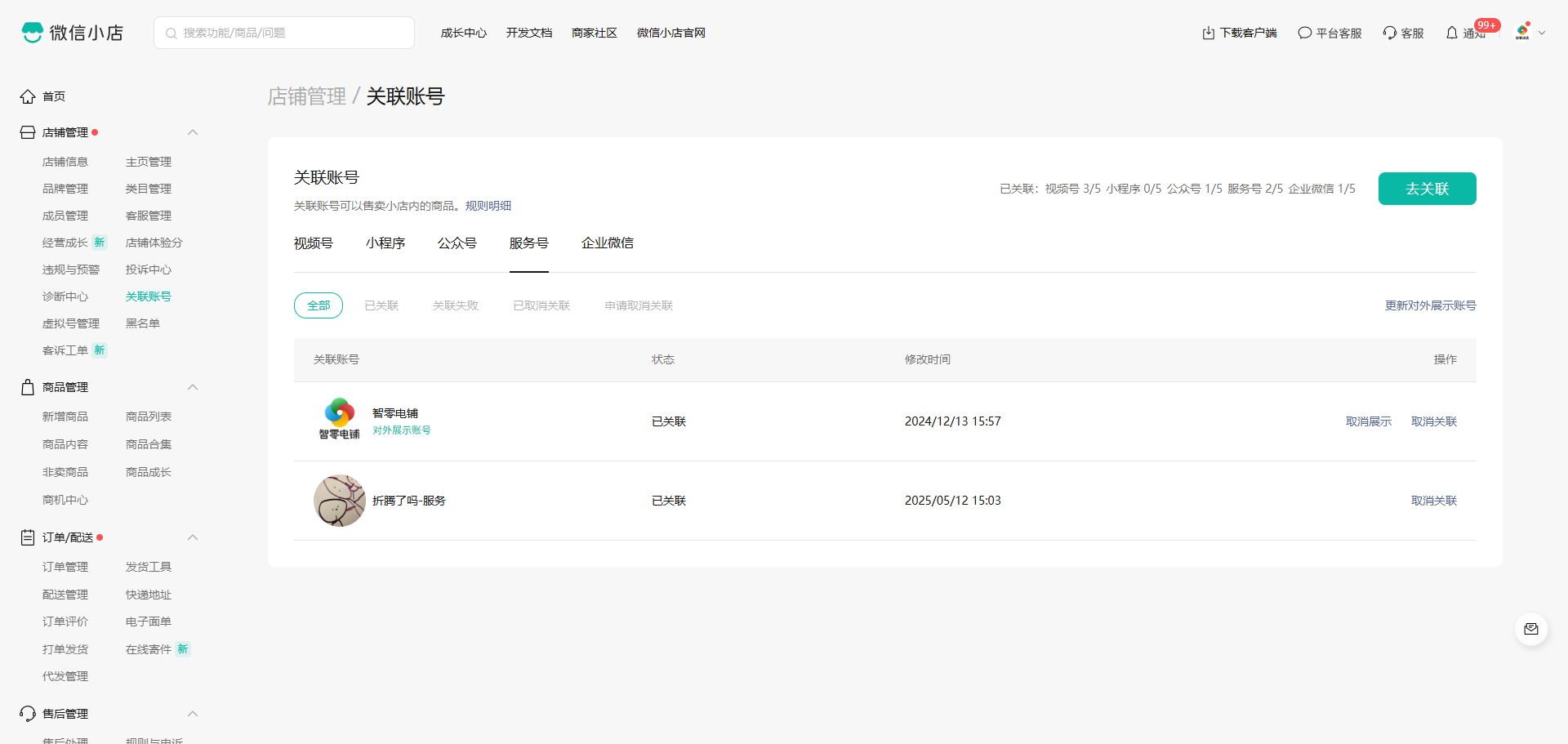 微信小店后台有个关联账号可以绑定服务号/公众号 ,之前可以再小店首页看到服务号,现在看不见.