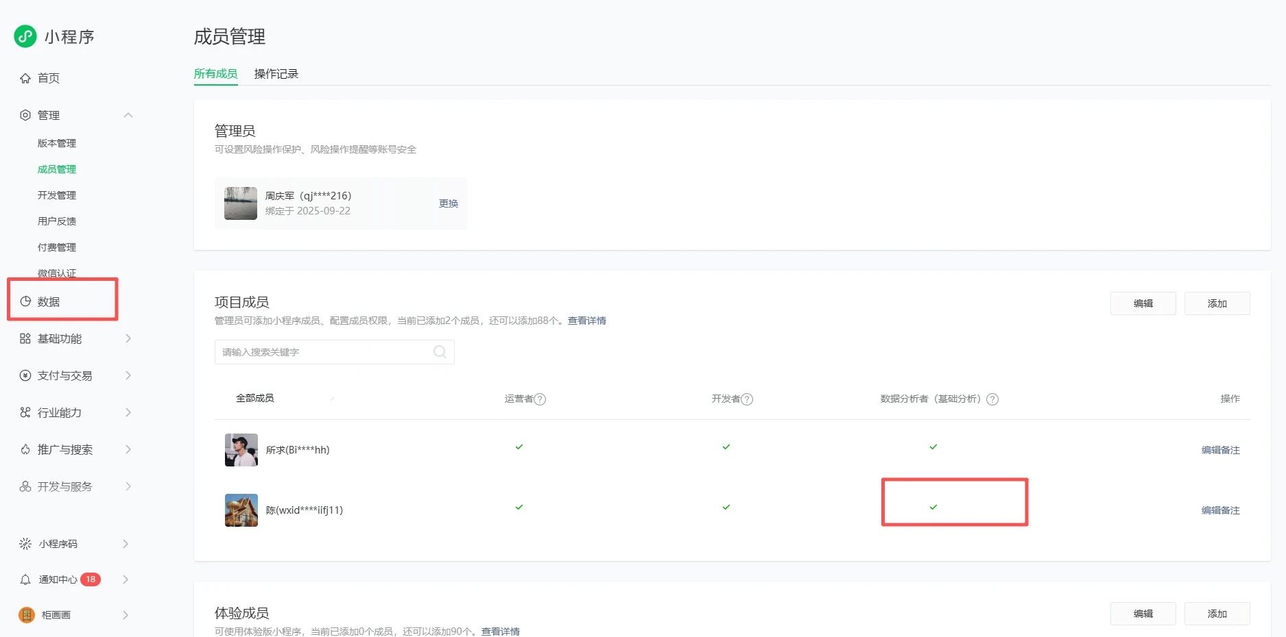 微信小程序账号是有数据查看权限的,实际却不能查看为什么