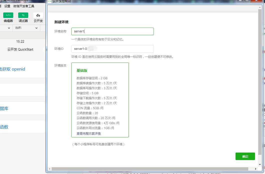 点击图1的确定后,云开发控制台就永远停留在了图2的样子
