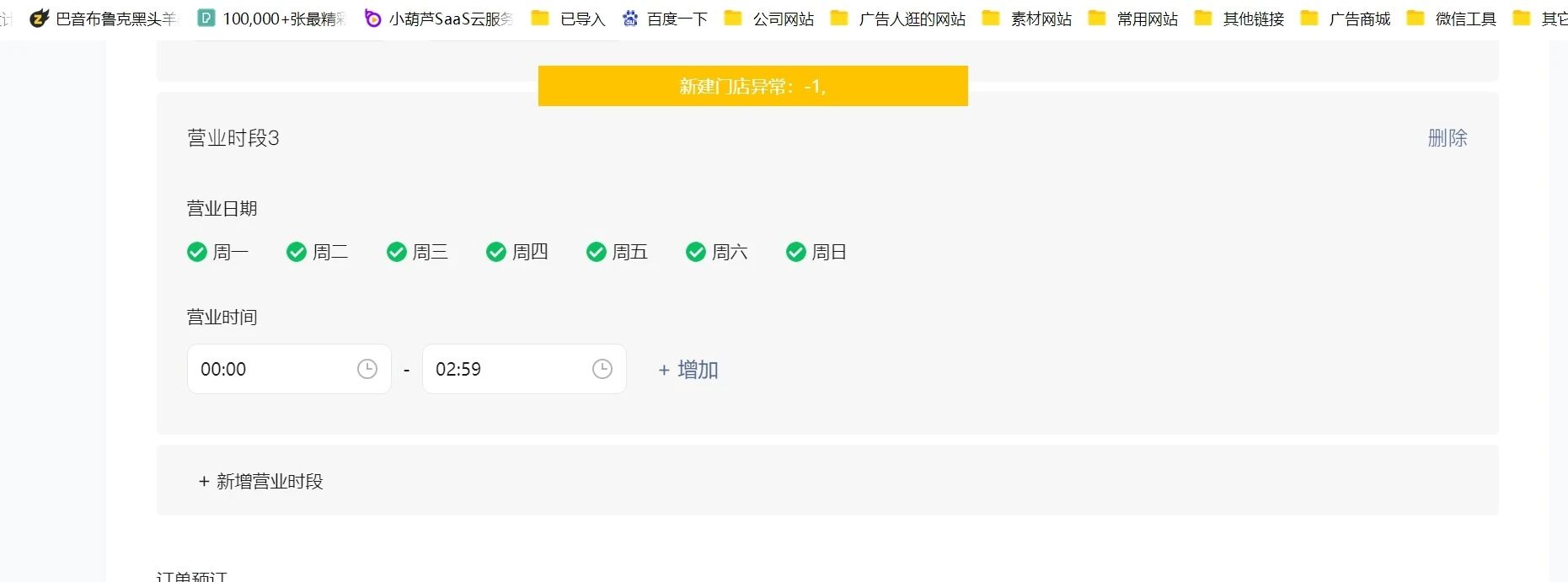 门店快送营业时间图填写正确老是报错请问什么原因?