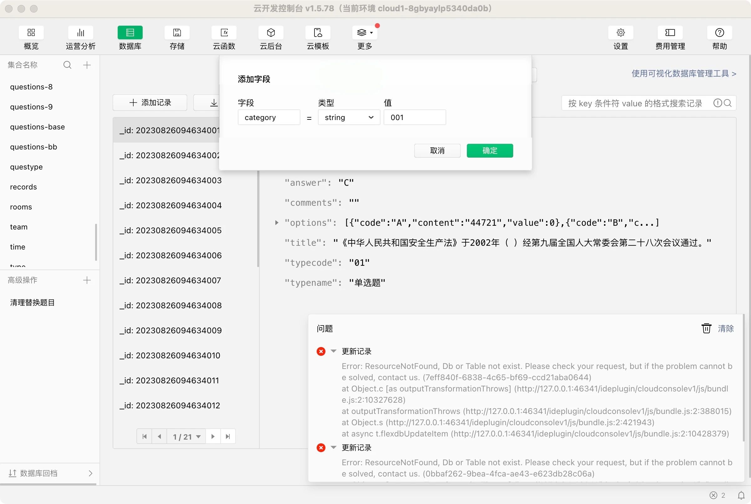 云开发控制台集合新增字段怎么提示没有这个集合呢?