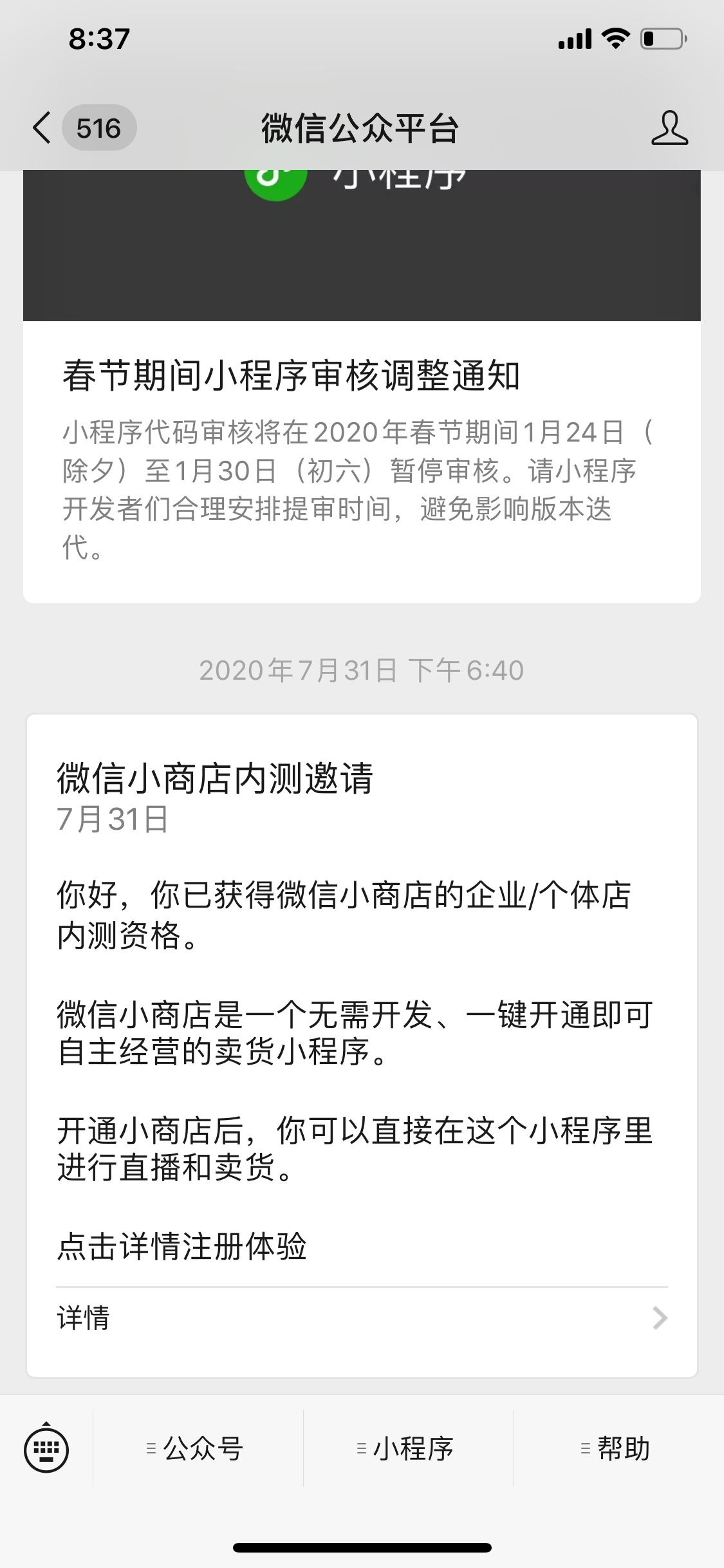 目前只能选择,企业/个体户主体。然后去https://mp.weixin.qq.com,扫码登录,选择微信小商店