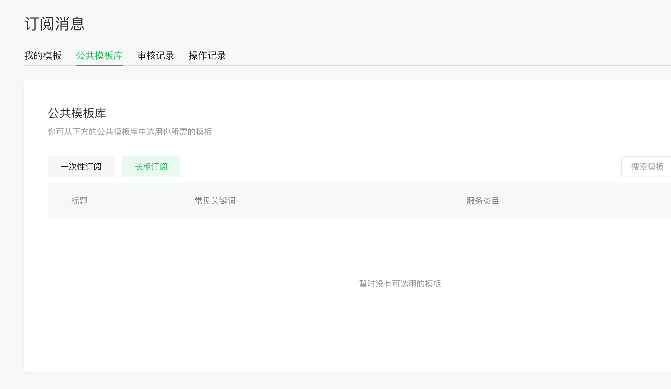 设备申请和消息能力申请已通过,但没有长期订阅消息模板可以选择,请指导如何开通,谢谢。