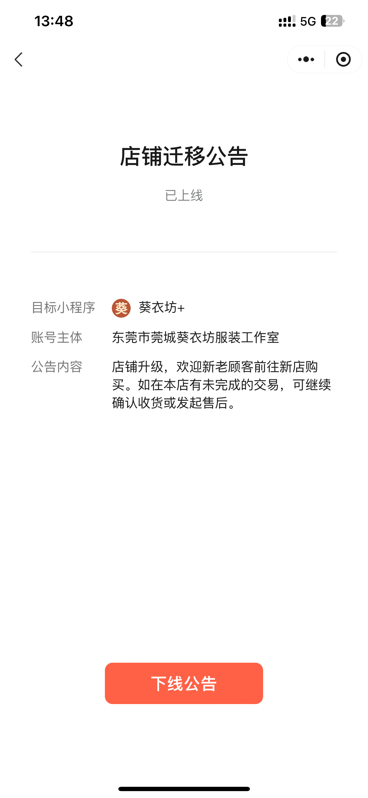 微信小商店设置了店铺迁移公告,但为什么前端没有展示公告?