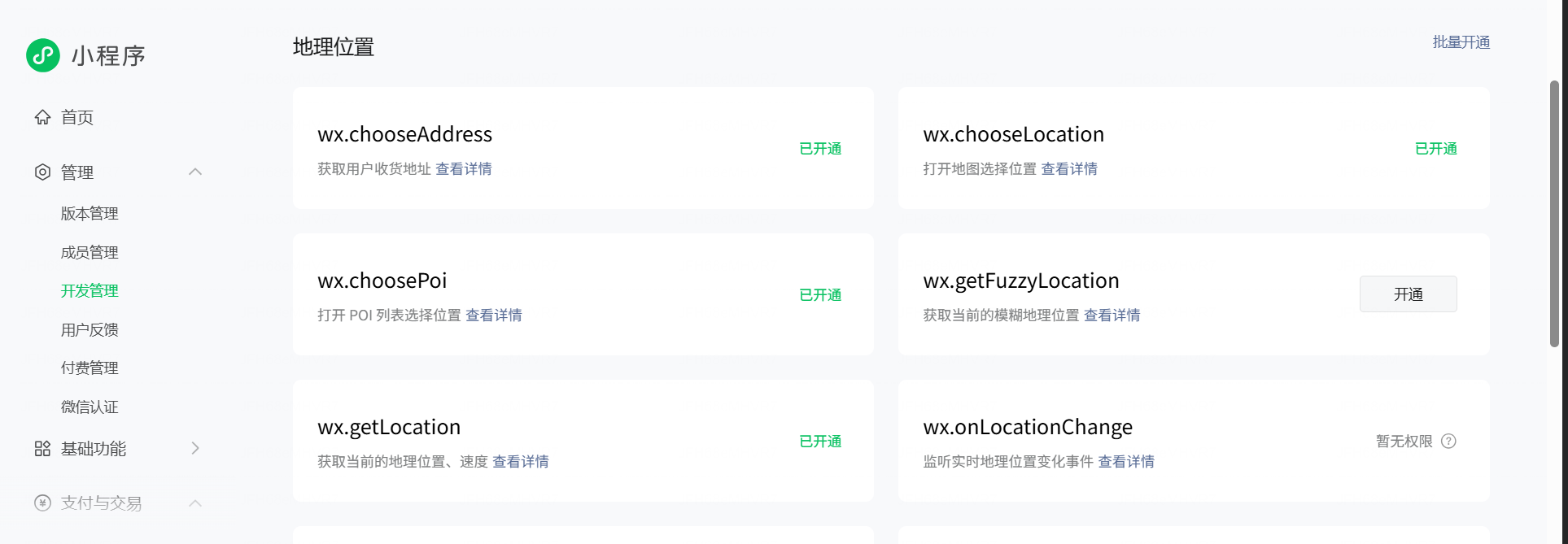 可调用https://developers.weixin.qq.com/doc/oplatform/openApi/miniprogram-management/privacy-api-management/api_getprivacyinterface.html确认