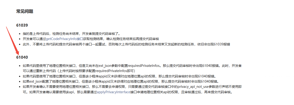 你好,报错61040参考https://developers.weixin.qq.com/doc/oplatform/Third-party_Platforms/2.0/product/apply_privacy_api.html排查