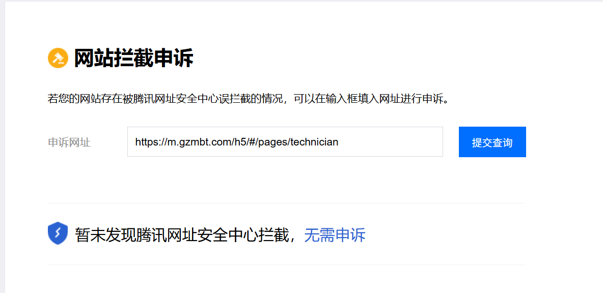 你好,经审核,域名【gzmbt.com】下的链接【https://m.gzmbt.com/h5/?#/pages/technician】的内容存在违反《微信外部链接内容管理规范》的第1条“诱导分享类内容”,请对相关内容修改后进行申诉;申诉方式可点击停止访问页底部入口进行操作,我们会在三个工作日处理,请耐心等待。