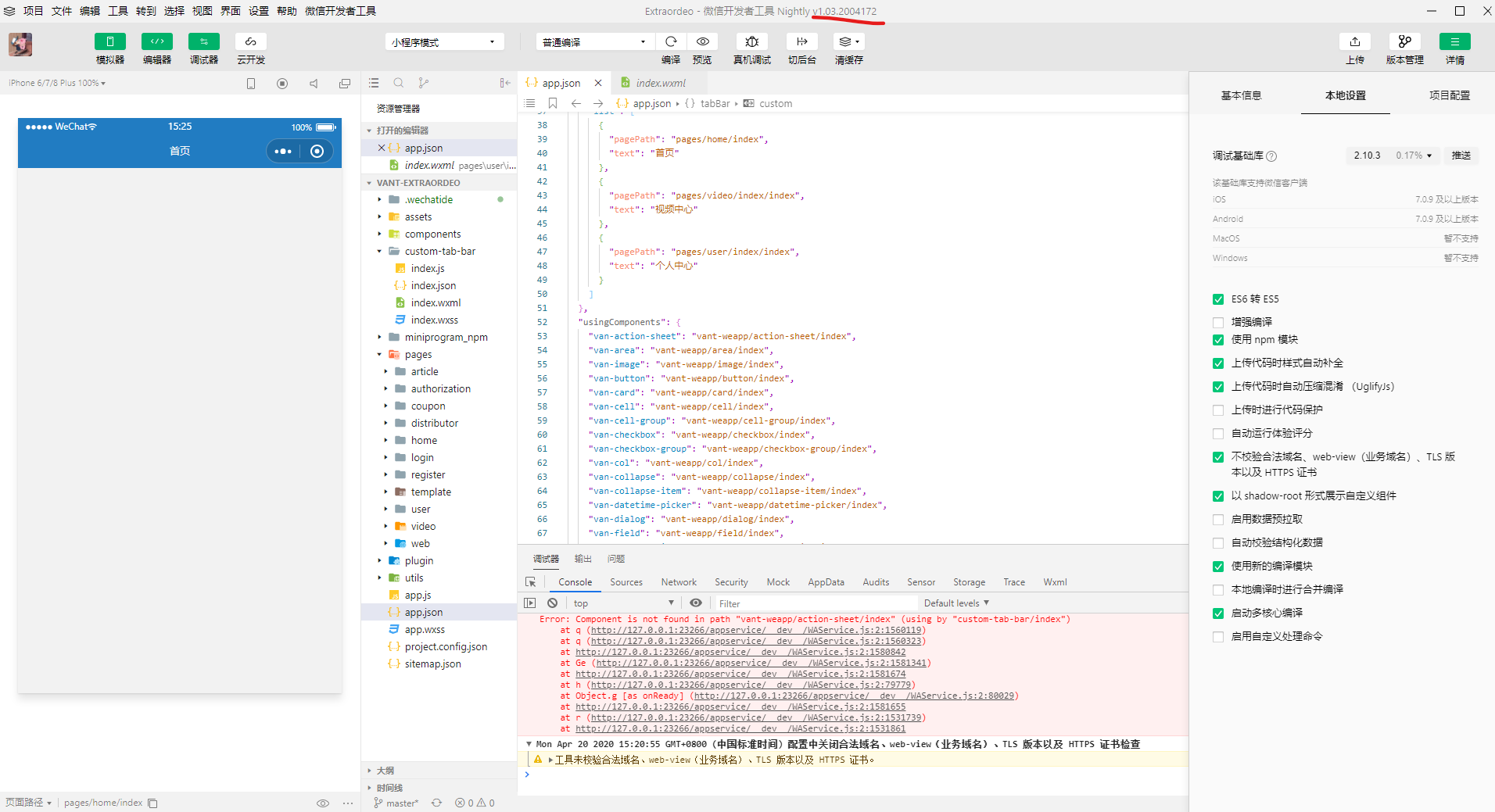 你好,试试取消勾选“使用新的编译模块”,然后清除缓存再重新编译看看能不能解决