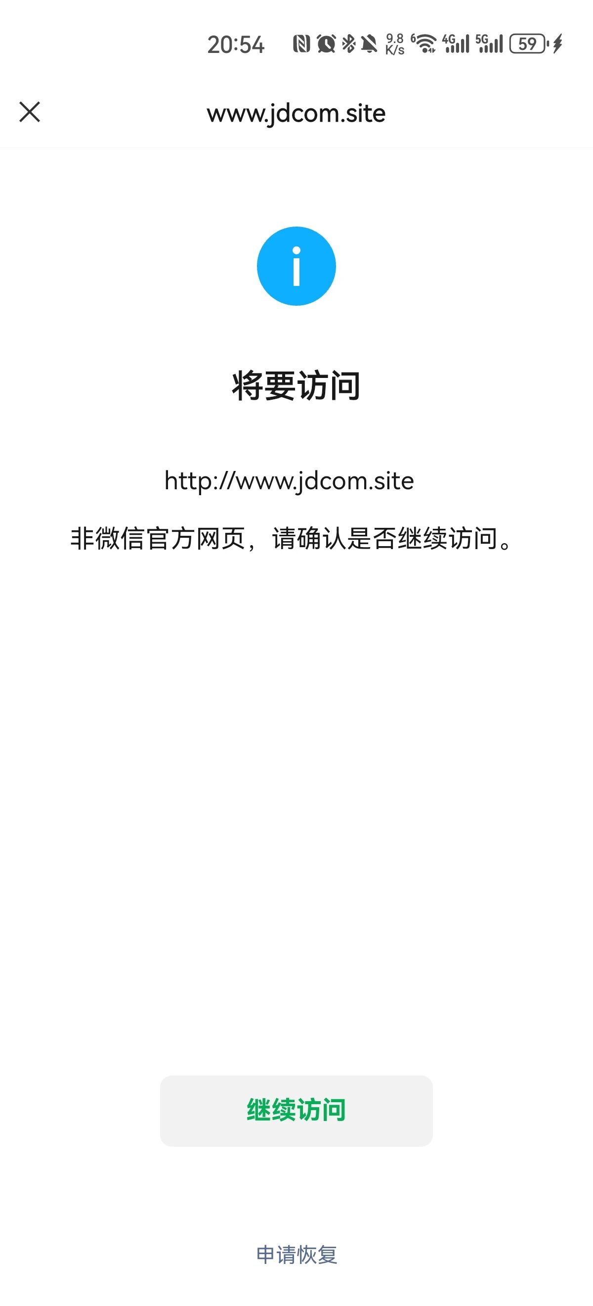 目前网站已经备案(www.jdcom.store和www.jdcom.site),但在微信打开还是提醒这个,非微信官方网页,请确认是都继续访问。