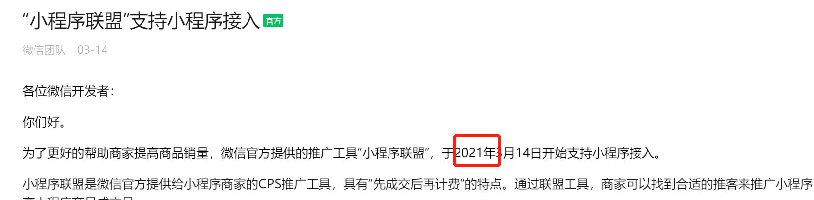 为了更好的帮助商家提高商品销量,微信官方提供的推广工具“小程序联盟”,于2022年3月14日开始支持小程序接入。