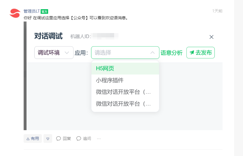 你好 在调试这里应用选择【公众号】可以看到欢迎语消息。