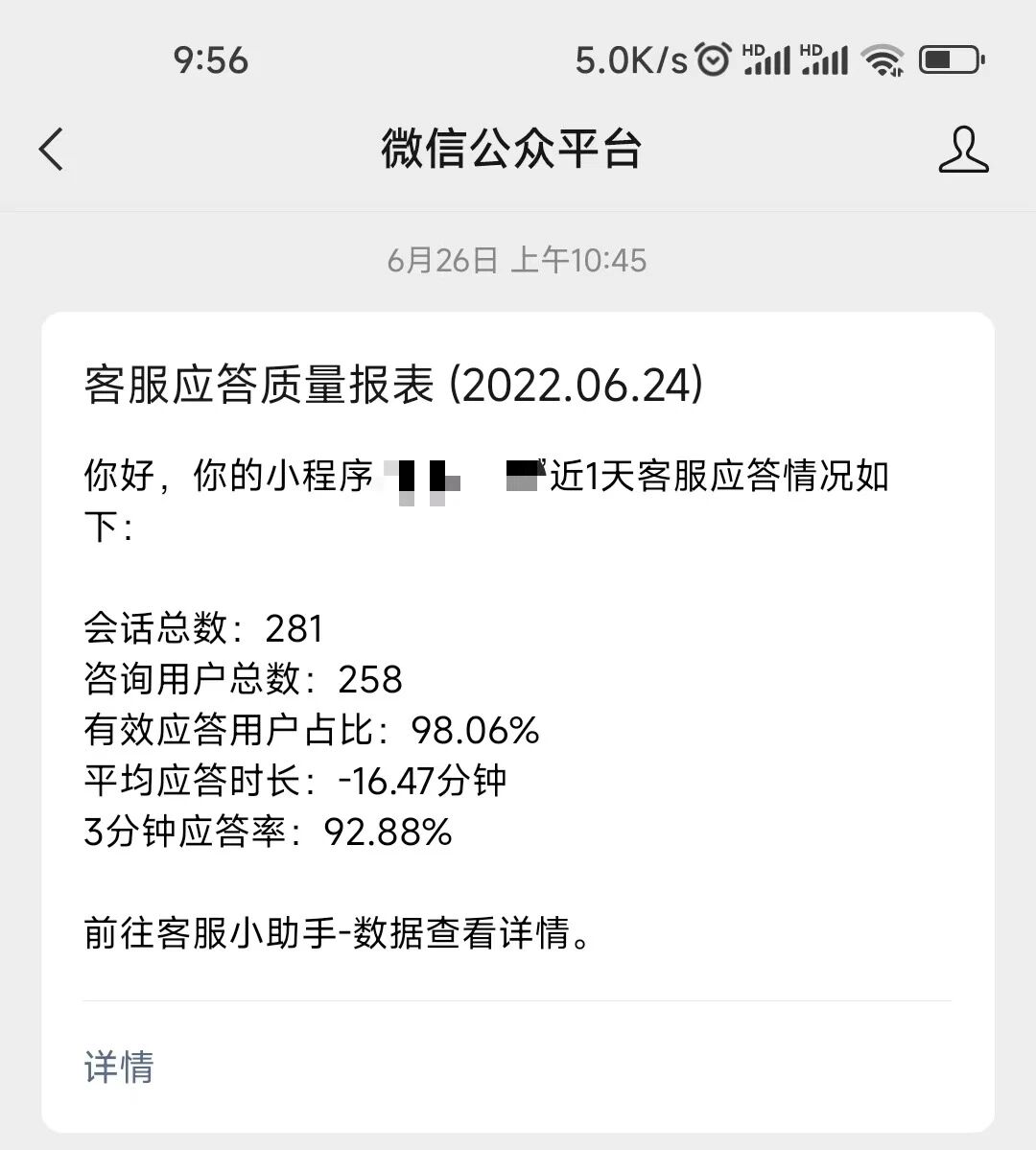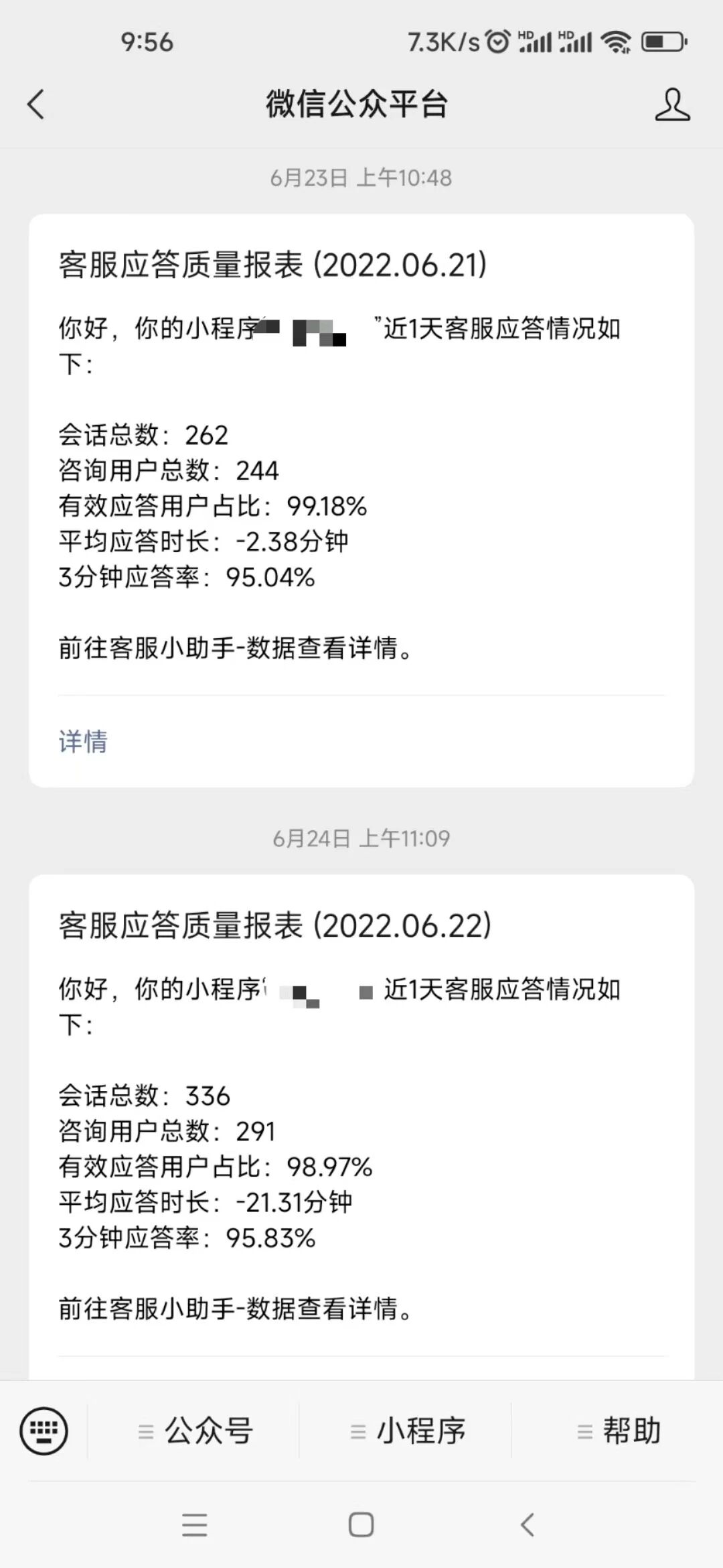 小程序客服系统显示异常,平均应答时长和3分钟应答率核算异常,希望尽快优化