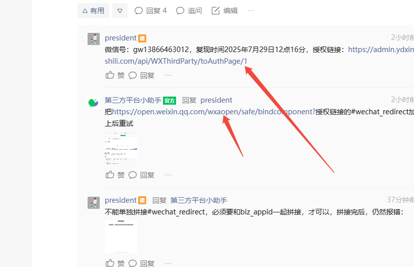 你好,请提供复现微信号、操作时间点、构建的完整授权链接