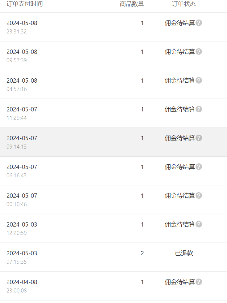 你好,请按照“可结算时间”筛选订单实际结算时间,然后对照“财务管理-收入结算-结算记录-分广告收入-返佣商品”查看返佣商品收入数据及结算状态。