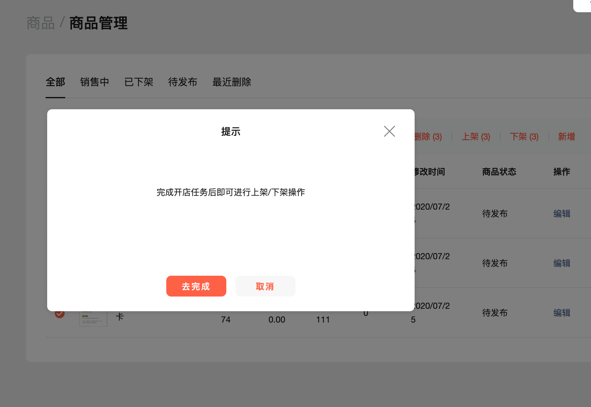 微信小商店,发布商品,一直提示:完成开张任务