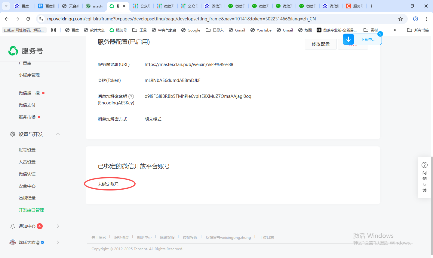 登录微信开放平台去绑定服务号。