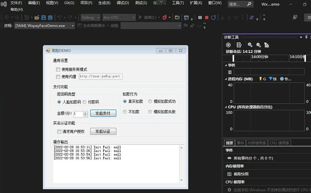 在windows平台上使用java语句,调用人脸支付的设备初始化接口WxpayFaceSDK.dll中的wxpayCallFaceService函数,返回-1。