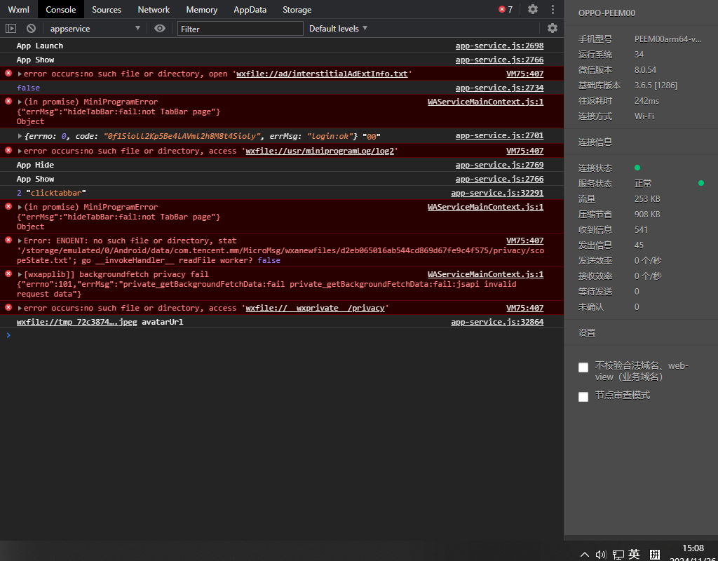 只显示静态数据,这是有问题的手机真机调试的报错信息,ios和安卓都有安卓机居多,但是我这边测试了都没问题,把小程序appid换了也是如此,具体是什么原因??急!!!