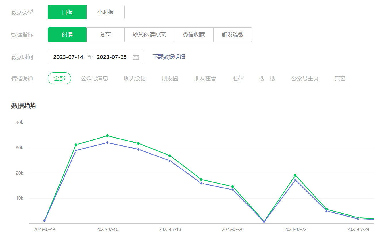 官方大大,您好,这是我这边的数据截图,麻烦您看下,就是感觉突然被限流了,我这边有时候自己都搜不到文章。我想着,能过10W应该不存在质量不好或者其他的,但是不知道是什么影响的,就突然没有增长,有时候是半夜突然增长,白天没有明显数据增加,这个我个人感觉有点不太正常,所以麻烦您看一下,真的拜托了!