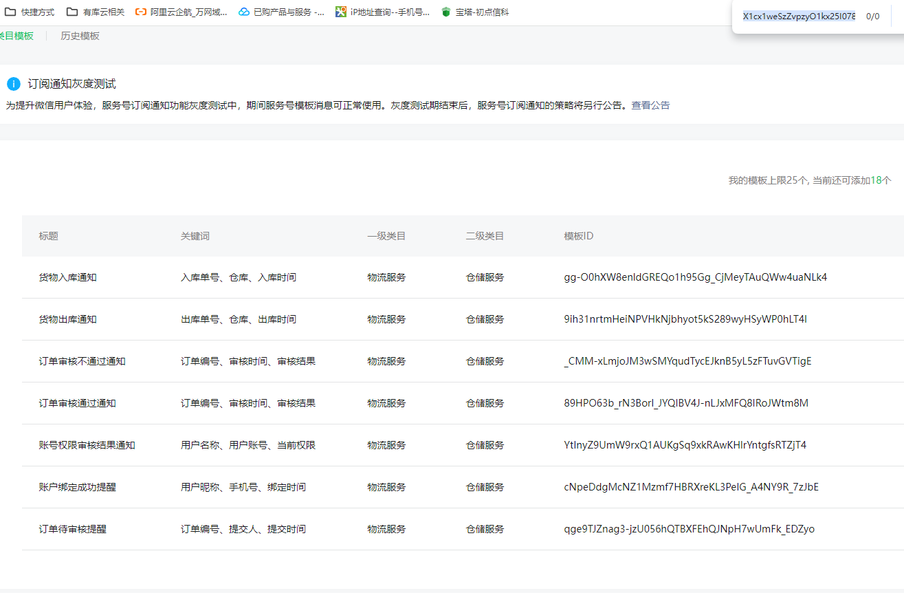 被删了好几个, 不知道是模板库被删了导致我的模板消息丢失, 还是直接删的我的模板