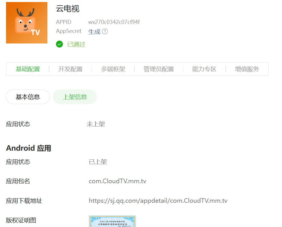 如图所示,Android应用状态,已上架,而且也有地址,但是上面还有一个应用状态是未上架?
