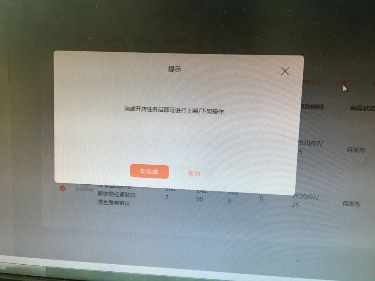一直提示去开张,但是开张成功了,上架不了产品