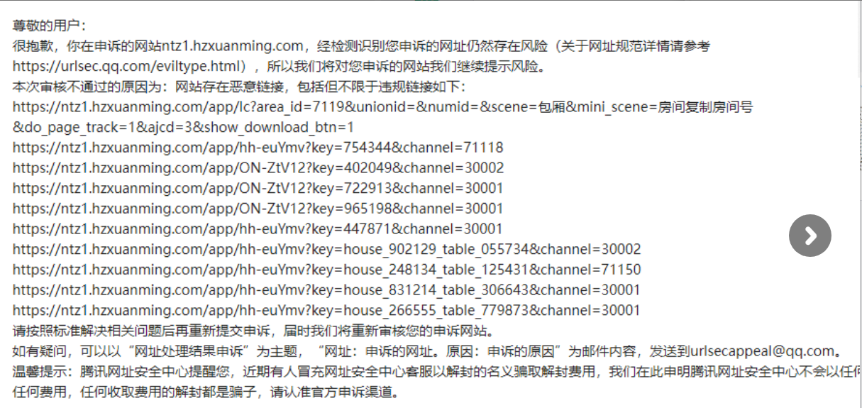 腾讯安全网址提示:网站存在恶意链接,实际不知道具体是哪里的问题,目前没法改。