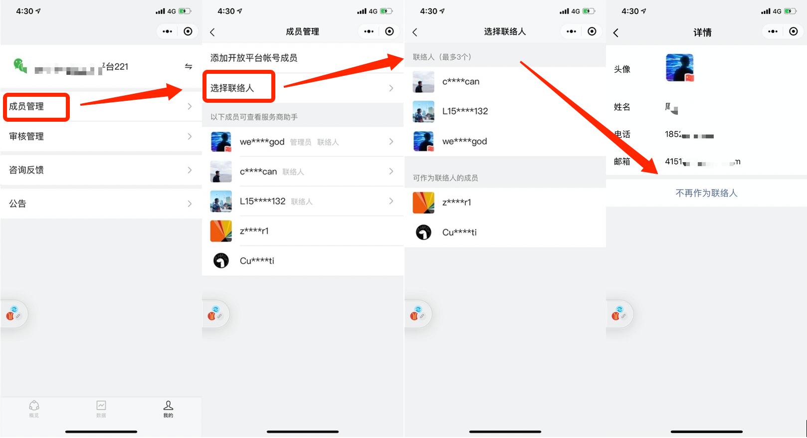 联络人是主要对接平台的服务商接口人,服务商最多可以指定3个联络人,后续服务商部分运营敏感信息仅对联络人推送,补齐联络人方式的服务商还有机会享受后续紧急情况平台电话提醒的服务,建议服务商们尽快前往“小程序服务商助手-我的-成员管理-选择联络人”补齐联络人相关信息。