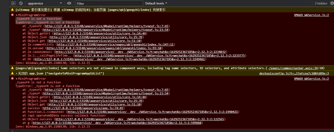 【问题描述】:第一次做小程序,新下载的开发工具,Git克隆项目以后导入,就会报错。同事以前开发过小程序,用的是老版本的开发工具,正常用。