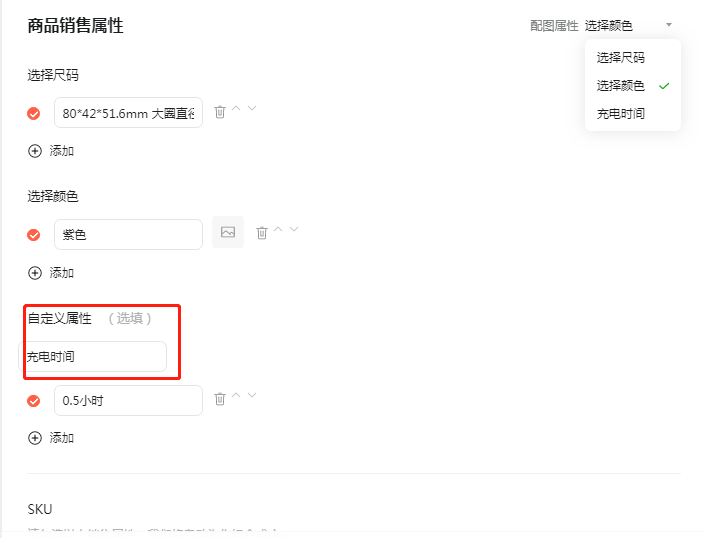商品属性这里确实是个硬伤,刚拿到内测就注意到了,发布产品想用的属性不能添加,不想用的尺寸和颜色还必须选