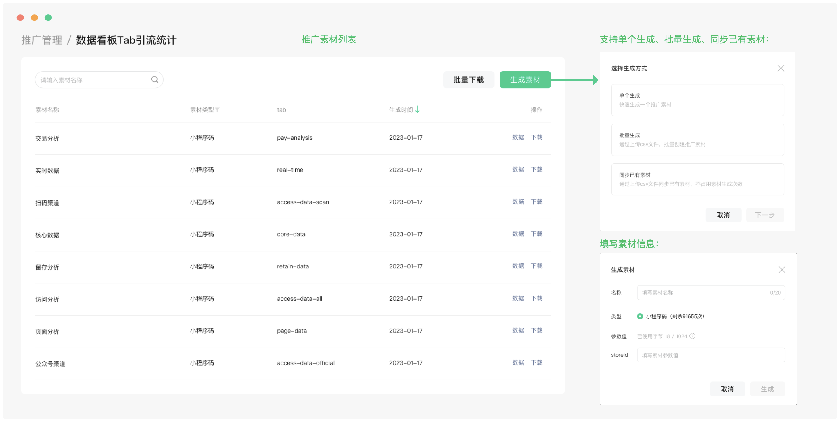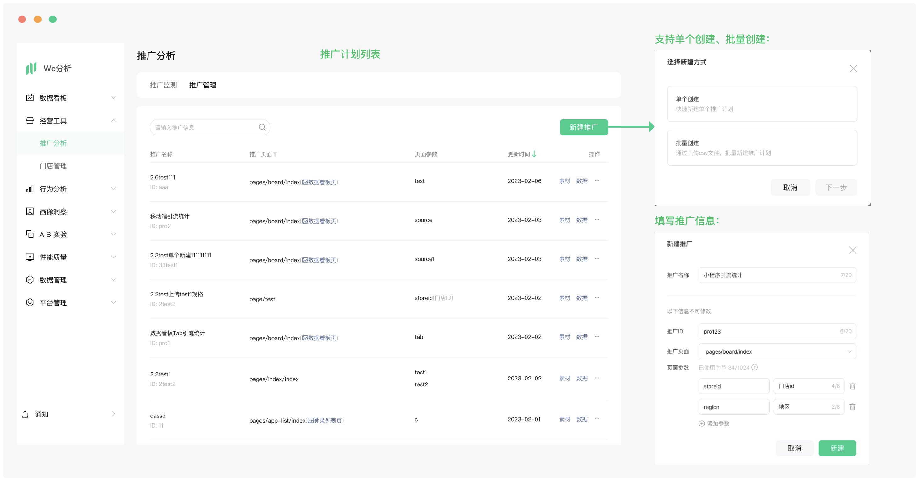 基于推广计划可以生成小程序码,也可以将已生成过的参数内容同步至We分析