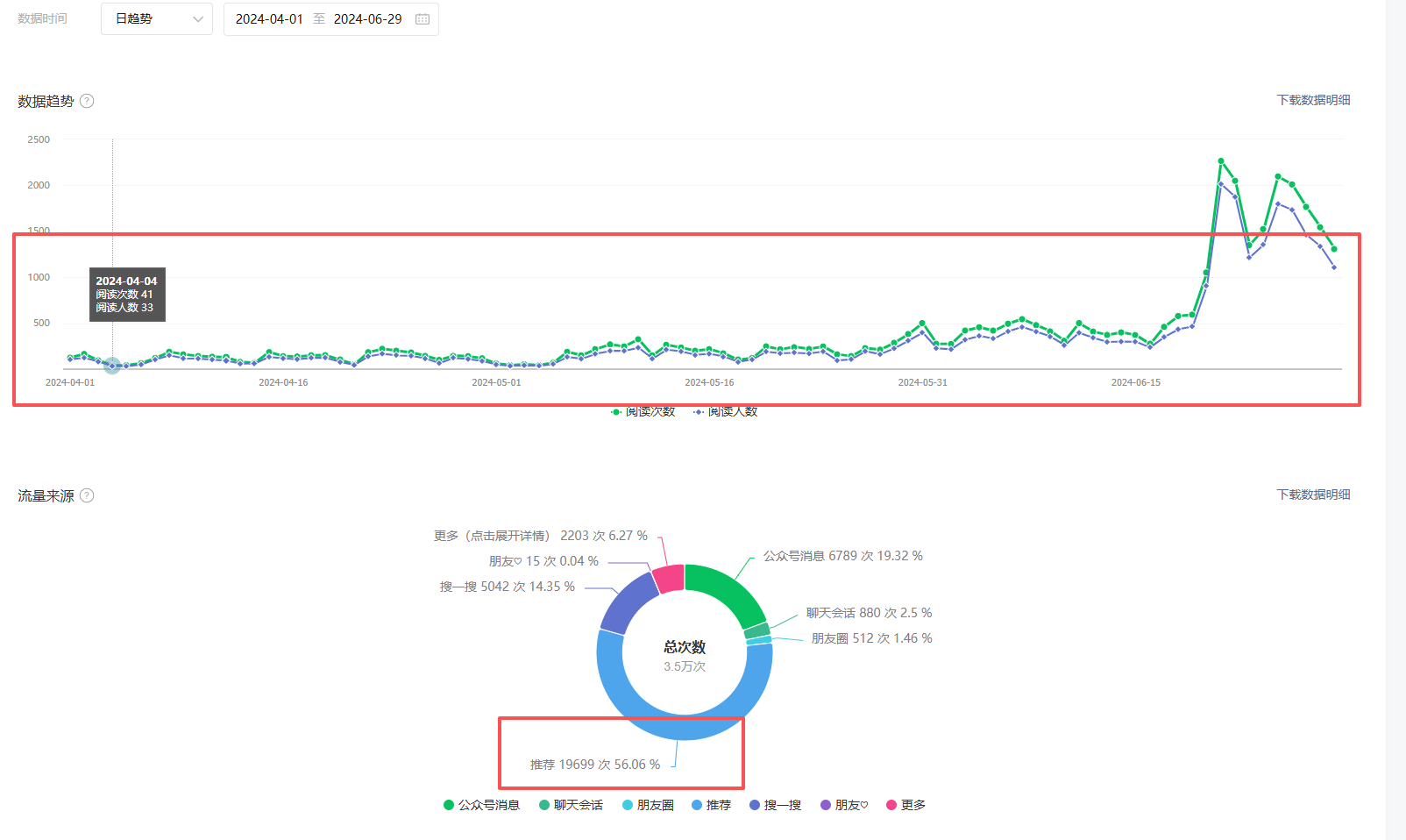 在24年之前平均阅读量每天几乎都可以达到500,推荐流量占比50%以上。